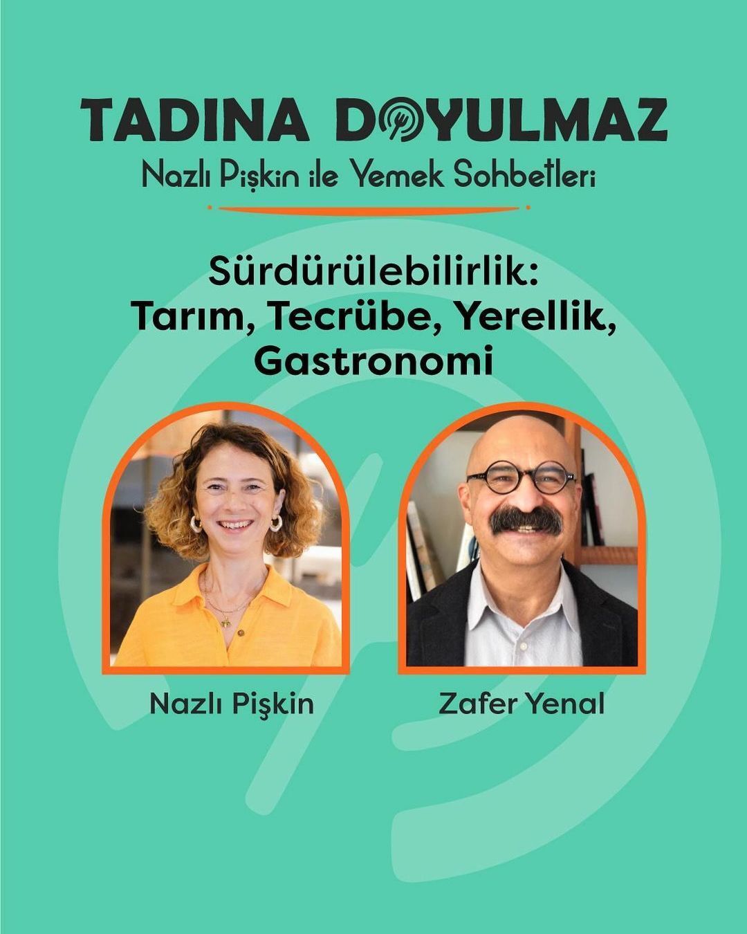 Yemek kültürü yazarı, çevirmen ve Akdeniz tarihçisi Nazlı Pişkin tarafından hazırlanan Tadına Doyulmaz, “gıdayı, üreticiyi merkeze alarak her yönüyle yemek kültürüne dair kaybettiklerimizi hatırlamaya, bugünkü durumu ortaya koyup geleceği şekillendirmeye davet eden” bir podcast serisi. Zafer Yenal’la sürdürülebilirlik üzerine yapılan sohbeti özellikle öneriyoruz.