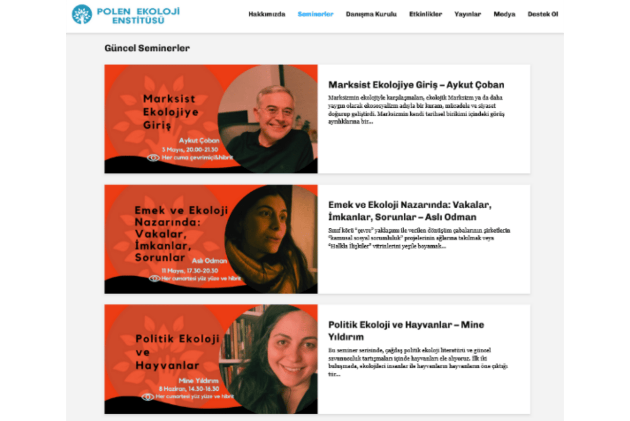 “Polen Ekoloji Enstitüsü “Marksist bir ekoloji hareketi için” şiarıyla 2019’dan beri faaliyet yürüten Polen Ekoloji Kolektifi’nin bir bileşenidir. Çalışmalarıyla ekoloji hareketinin güçlenmesine ve toplumsallaşmasına katkı sunmayı hedefler. Ekoloji mücadelesinin temel sorunları olan tekil vaka odaklı yaklaşım, yerelcilik, aktivizm ve akademi ayrılığını aşmayı, strateji ve program yoksunluğunu gündeme taşımayı, sorunları toplumsallaştırma ve politikleştirme eksikliği üzerine bilgi ve politika üretmeyi, örgütlenme ve eylem kanallarını beslemeyi amaçlar. Enstitü, ekoloji hareketinde yaygın olan, kapitalizme kayıtsız ideoloji ve politikalar karşısında sistem değişikliğini benimseyen bir zeminde hareket etmeyi önüne koyuyor.”
